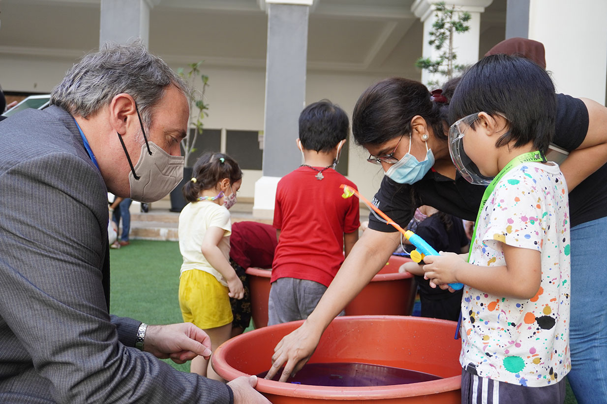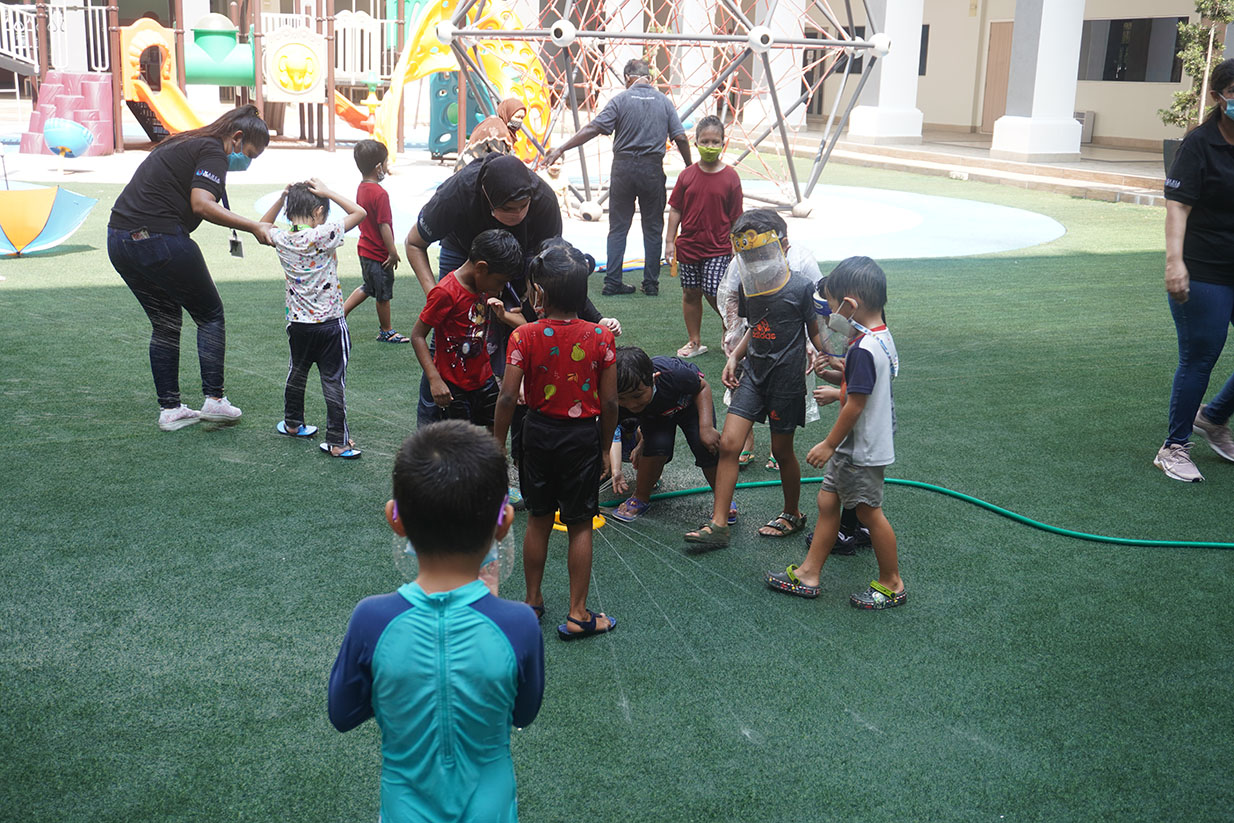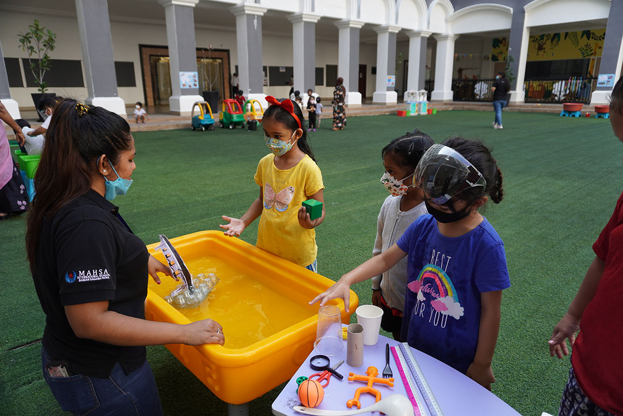 In MAHSA International School, the students learn through several ways, mediums, and tools. The teachers from the Early Years classes conducted Water Play Day for the children. For this event, they learned about simple Mathematics, Science, Geography, and many more with water involved. It was an interesting and fun event for the children, learning through fun activities.
