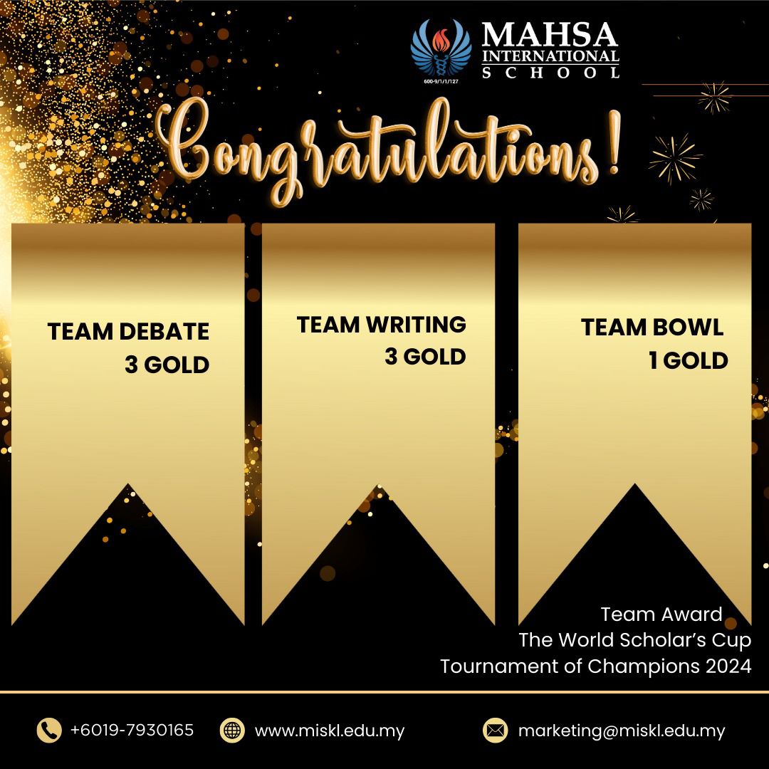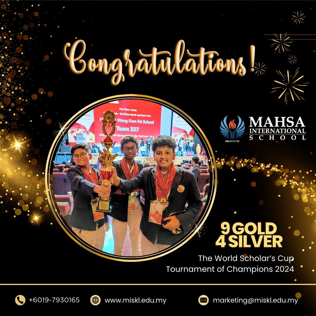 Three awesome teams (9 students total) represented MAHSA International School at the World Scholarโ€™s Cup Kuala Lumpur Regionalโ€”and they didnโ€™t just show up, they scooped up Gold and Silver medals! ๐Ÿ…๐Ÿ™Œ